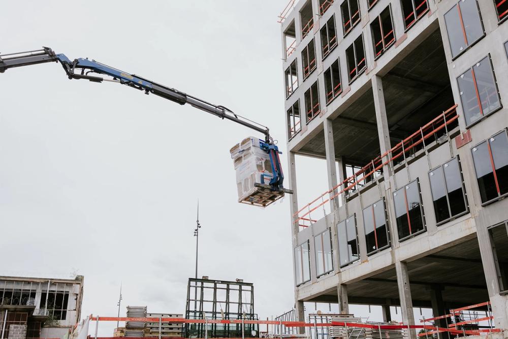 Une flotte de 30 camions avec chauffeurs internes livre vos matériaux exactement où vous le souhaitez. Directement sur le chantier, au septième étage ou même par la fenêtre ? Aucun défi n’est trop grand. Nos cages et grues avec mécanismes d’inclinaison uniques rendent les livraisons complexes incroyablement simples.